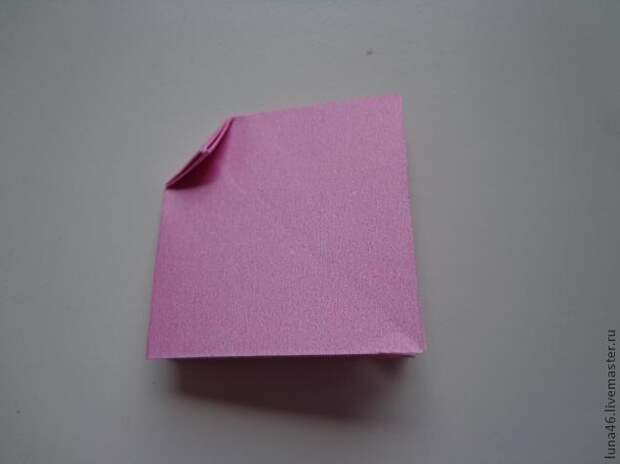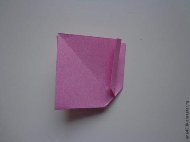 6. Делаем складки на сторонах меньшего квадрата, прилегающих к углу, куда заправлен маленький квадратик